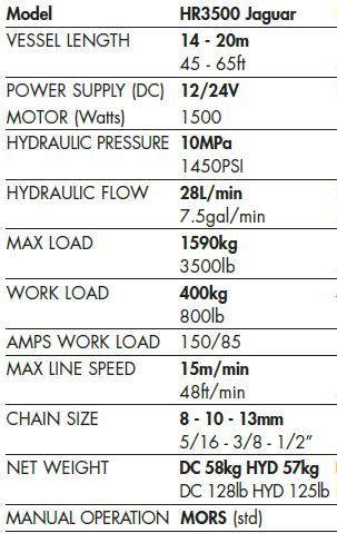 The HR3500 Jaguar horizontal windlasses are designed for vessels up to 20m and are ideal for installations where the chain box is not easily accessible. These windlasses are completely above deck and have a long-life marine aluminium alloy housing and a powerful high-performance motor with a high-quality Italian gearbox. The housing protects the motor and gearbox from the harsh weather.