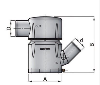 This type of waterlock is designed for modern high performance boats with one or two large engines which have little space to spare in the engine room. The outlet connection at the top can rotate through 360º and the inlet connection is at an angle of 45º upward. Type MG can only be installed in water injected exhaust systems. Its body is entirely made of synthetic materials, therefore not susceptible to corrosion or galvanic action.