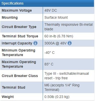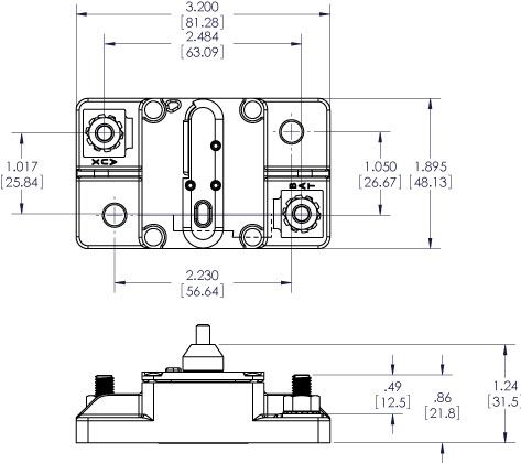 Thermal circuit breakers provides medium duty circuit protection for 25 to 150 Amp loads when switching and circuit protection are both required. Visible reset lever shows open condition. Trip-free, cannot be held closed after trip. Drop in replacement for 185-Series Circuit Breakers.