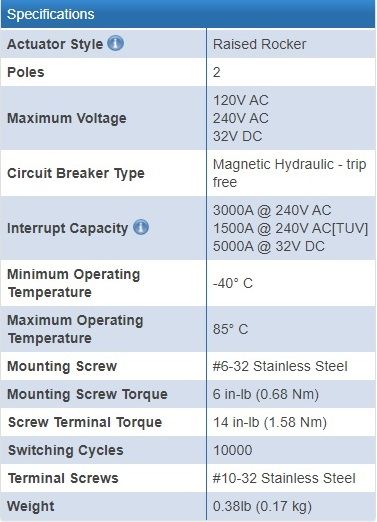 - Blue Sea Circuit Breaker A Series Raised Rocker - Double Pole