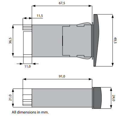 | Installation dimensions H x W x D | 36,5 x 21 x 90 |