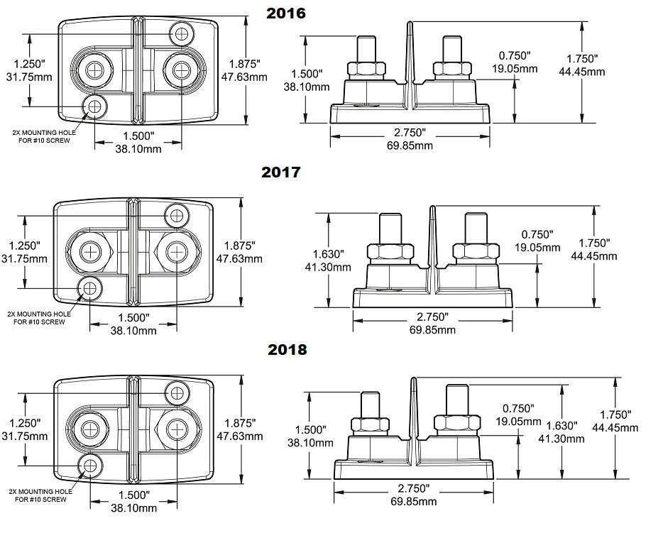 The Blue Sea Dual PowerPost provides a connection point for extending the length of high amp comductors like outboard harnesses.