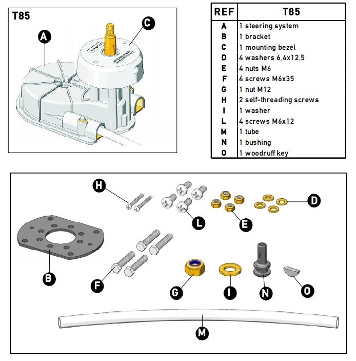 • T85 steering system is not to be used on boats equipped with engines that exceed the maximum horsepower rating of the boat
