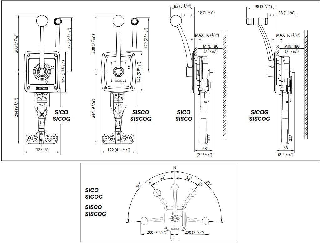 The SISCO single lever side mount remote control features throttle advance in neutral, plus micro switch 'start in gear' protection. The handle friction is adjustable. The push-pull cables for this single lever remote control can be installed either horizontally and vertically.