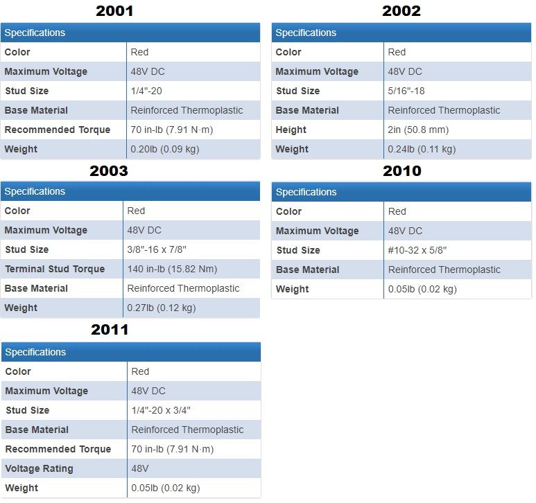 Insulated single stainless steel stud terminates multiple large conductors. Connects high amperage cables securely.