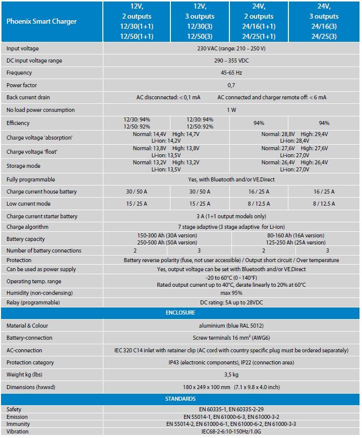 12V - 50A - 1 Output + Aux Output - 120-240AC