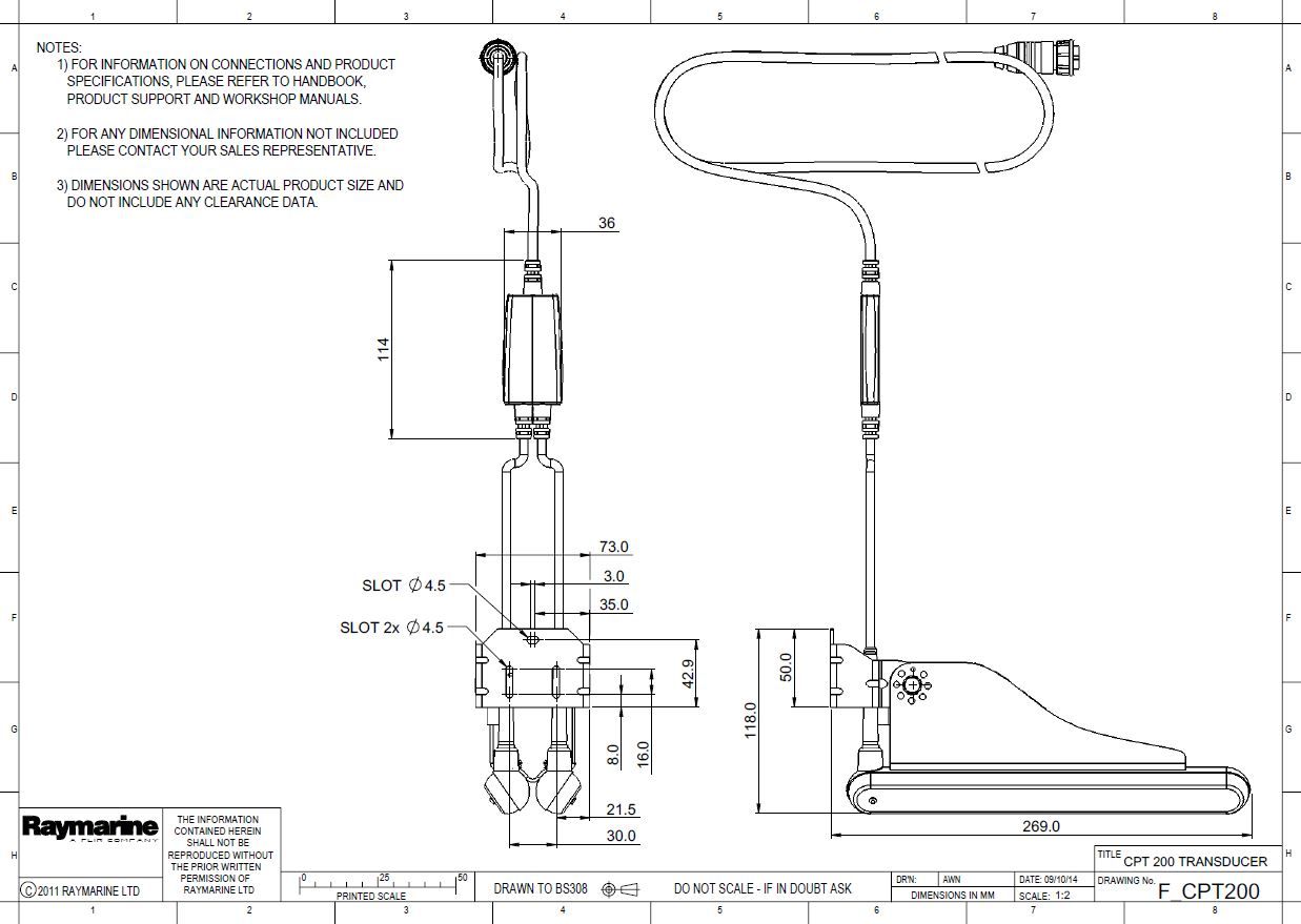 - Raymarine CPT-200 SideVision Transom Mount Trasnducer
