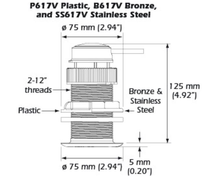 Operates at 235kHz so there is no interference with your 50/200 kHz fishfinder transducer. Compatible with wood and fiberglass hull materials. Hole diameter for installation: 2”.