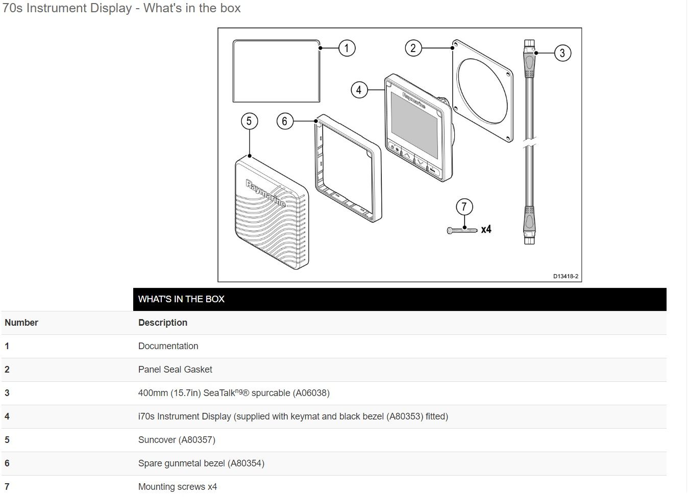 Maximum visibility and maximum versatility the i70s multifunction gives you the flexibility to display instrument and navigation data that is most important to you. Equipped with a bold and bright 4.1” display the i70s is easy-to-customize with digital, analog and graphical displays of depth, speed, wind and more. Add the i70s to your existing Raymarine instrument system or create a network of i70s displays and sensors, the choice is yours. All weather optically bonded display technology delivers brighter colors, sharper contrast, and a wide viewing angle. New glass bridge industrial design compliments Raymarine eS and gS Series multifunction displays. Simple user interface with sculpted rubber keypad for precise operation in all conditions. SeaTalkng networking for seamless connectivity to Raymarine systems and NMEA2000* networks. Convenient AIS repeater mode allows you to visually track nearby AIS targets.