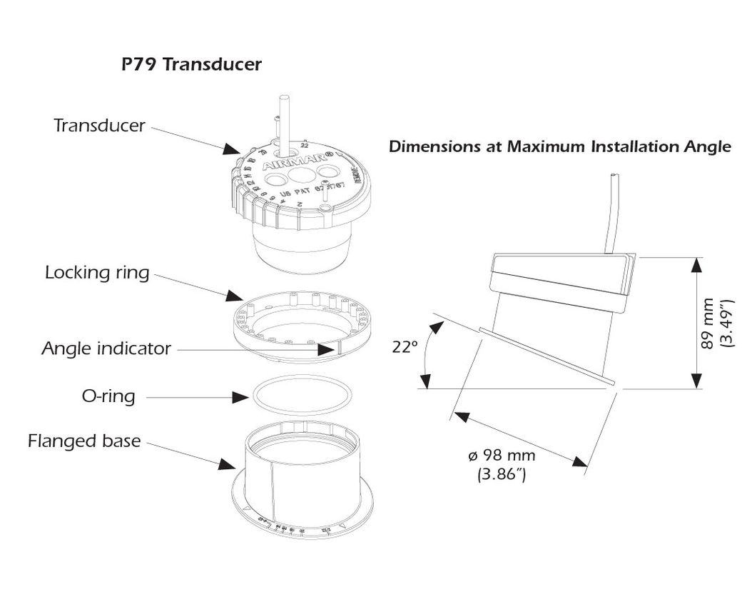The P79 is a dual-frequency, depth only, in-hull transducer that easily adjusts to hull deadrise angles up to 22°.