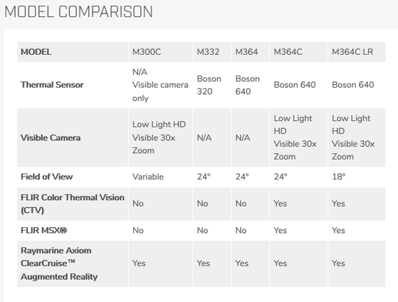 M364C and M364C LR offer superior thermal and low light imagery using the latest in FLIR BOSON and HD low light technology to deliver best in class performance. These dual payload options offer all the benefits of the M364 and M300C cameras with the addition of Raymarine Dual Payload only features such as MSX and Colour Thermal Vision.
