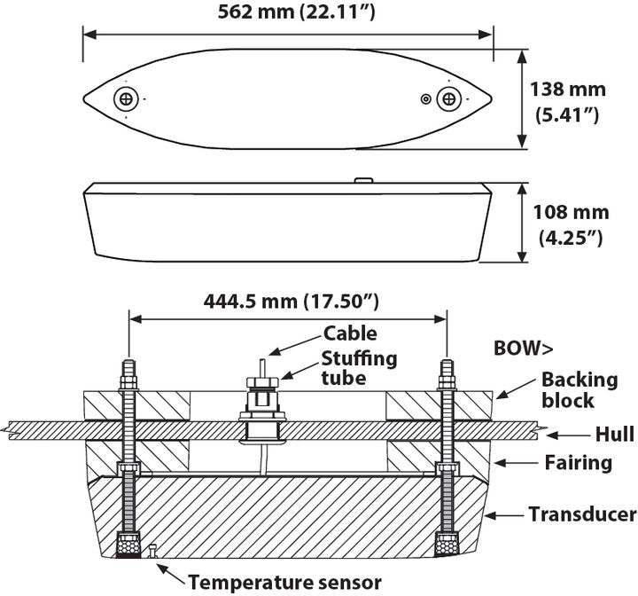 - Urethane transducer housing with high-performance fairing for improved high-speed performance