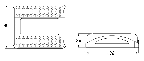 80mm wide X 96mm high LED Stop / Rear Position / Rear Direction Indicator Lamp. Installation via mounting bracket and clicking in the lamp.