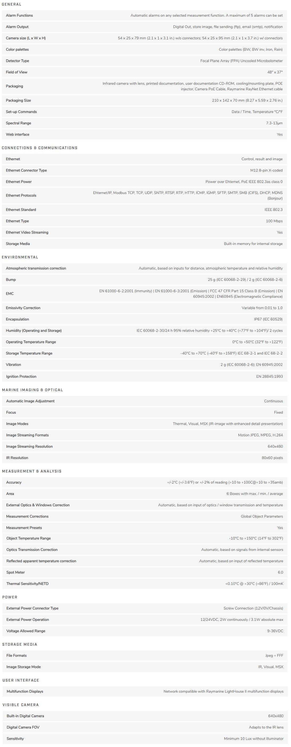 The FLIR AX8 thermal monitoring camera is designed to help monitor the critical equipment on your vessel, including engines, exhaust manifolds and shaft bearings. Featuring FLIR’s MSX® imaging on compatible Raymarine displays, the AX8 can blend imagery from visible and thermal cameras to provide enhanced imagery for engine room monitoring and help to prevent problems before being stranded out on the water