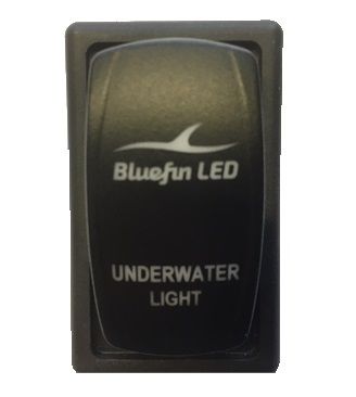 Bluefin LED On/Off Momentary Light Switch, supplied with wiring loom for use with the Bluefin P3, P6N, P6CC, P12, B12, V12, M12, H16, H20, S16, S20, GW16 and GW20 underwater lights.