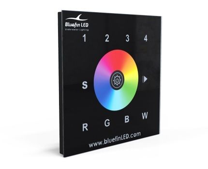 Packed with features the Bluefin LED RGBW WIFI DMX Controller allows users to select the desired colour via the glass touchpad and colour wheel.
